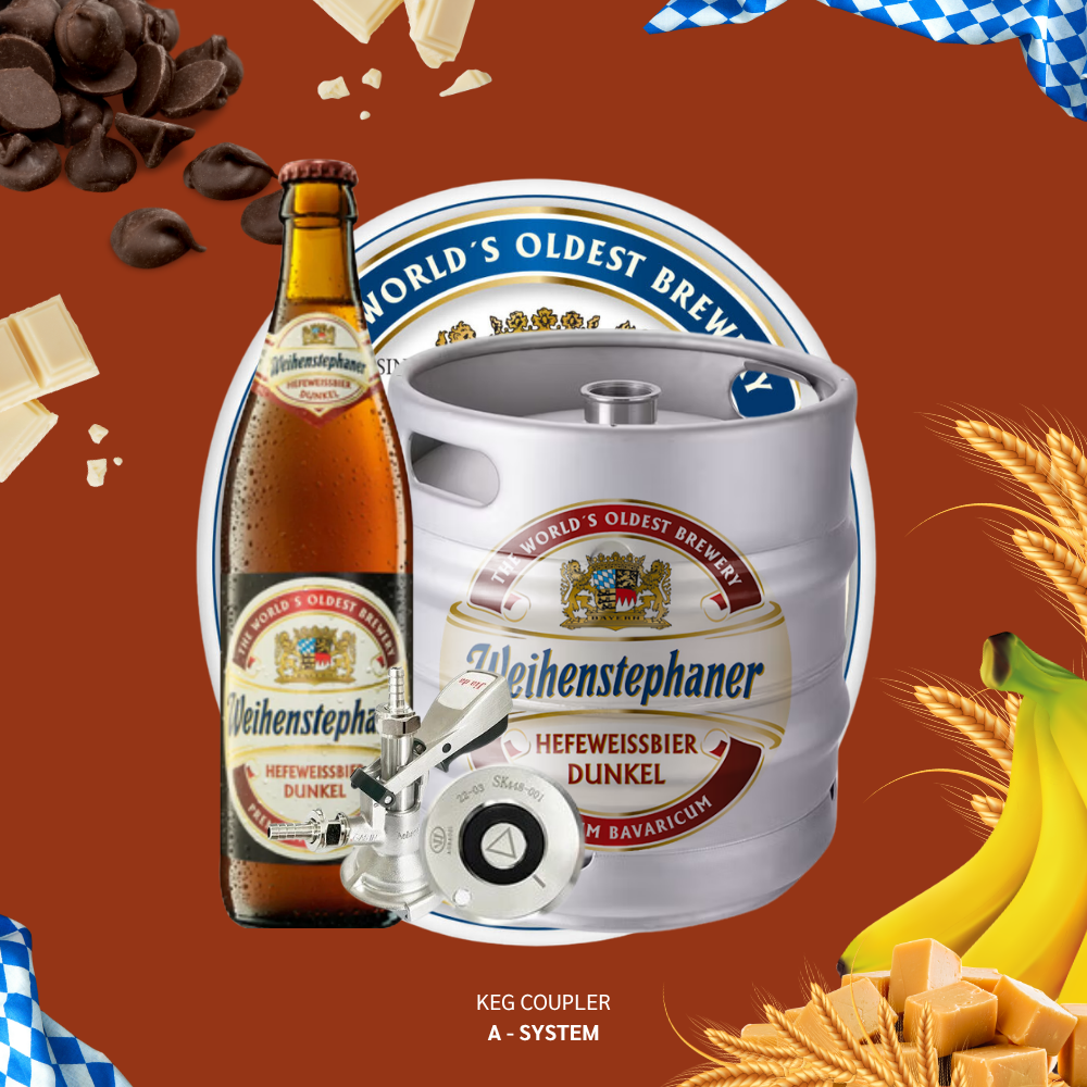 ไวเฮนสเตฟาน เฮเฟอ-ไวซ์เบียร์ ดุงเคิล เบียร์ 30 ลิตร เบียร์ข้าวสาลีสีเข้มแบบไม่กรอง (Dunkel Unfiltered Wheat Beer) ที่ผลิตจากโรงเบียร์เก่าแก่ที่สุดในโลก โดยใช้มอลต์คั่วพิเศษเพื่อให้ได้สีและรสชาติที่เข้มข้นขึ้น มีสีน้ำตาลเข้มสวยงาม โดดเด่นด้วยกลิ่นหอมซับซ้อนของมอลต์คั่ว คาราเมล ขนมปังกรอบ ผสมผสานกับกลิ่นกล้วยและกานพลูอันเป็นเอกลักษณ์ของยีสต์ไวซ์เบียร์ รสชาติ Medium-bodied นุ่มนวล มีรสชาติอบอุ่นของมอลต์คั่วอย่างชัดเจน และจบแบบกลมกล่อมและยาวนาน เป็น Dunkel Weizen ที่สมดุลและหรูหรา