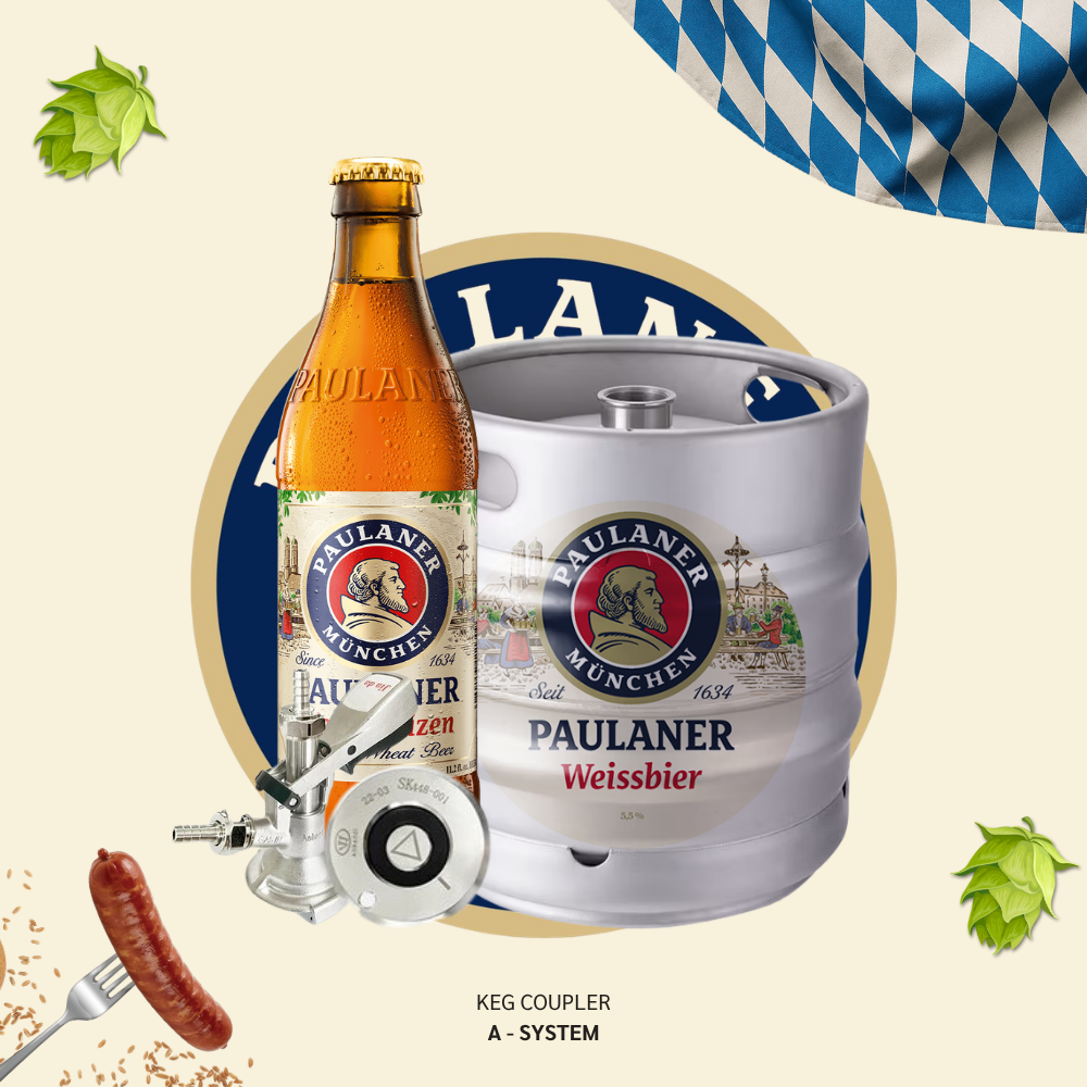 พอลลาเนอร์ เฮเฟอ-ไวซ์เบียร์ ดราฟท์ 30 ลิตร เบียร์ข้าวสาลีแบบไม่กรอง (Unfiltered Wheat Beer) ที่ได้รับความนิยมสูงสุดจากเมืองมิวนิก เยอรมนี เหมาะสำหรับบาร์ ร้านอาหาร หรือเทศกาลเบียร์ที่ต้องการเบียร์ข้าวสาลีแท้ๆ Paulaner Hefe-Weissbier มีสีเหลืองทองขุ่นเล็กน้อย โดดเด่นด้วยกลิ่นหอมเฉพาะตัวของกล้วย กานพลู และกลิ่นอายของขนมปังสด รสชาติ Light-to-Medium bodied, มีความนุ่มนวลและเป็นฟองละเอียด มีความสดชื่นสูง และจบแบบสะอาดพร้อมความรู้สึกเผ็ดร้อนของเครื่องเทศเล็กน้อย เป็น Weizenbier คลาสสิกที่ดื่มง่ายและสดชื่น